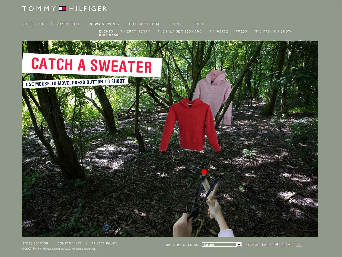 Een leuke pan-Europese interactieve Hilfiger Kids Game: Catch a Sweater & Catch a Badge. Schiet met je katapult een sweater uit de boom...