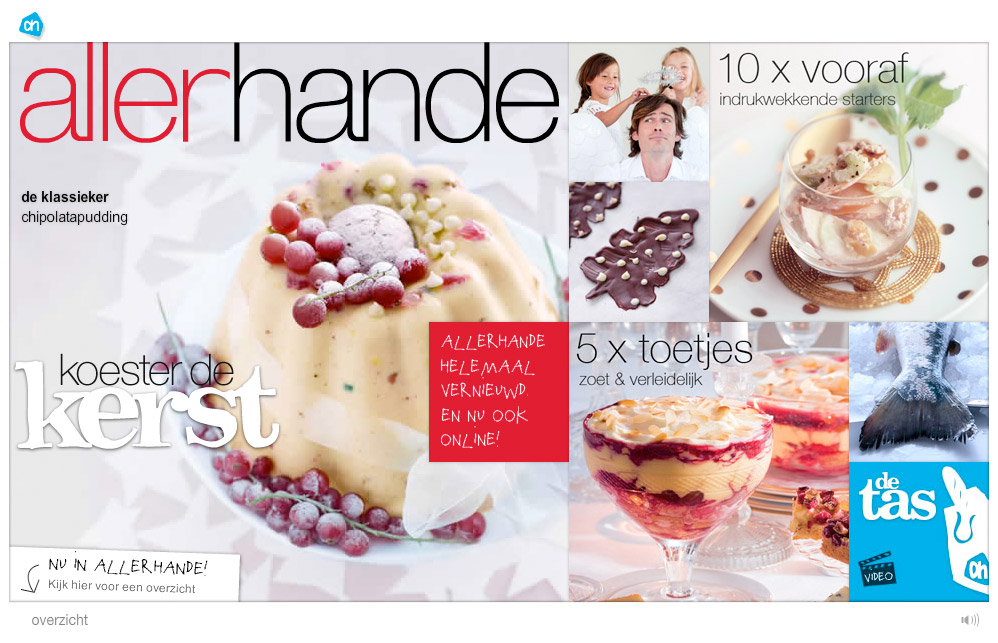 Nieuwe tijden, nieuwe stijl: hoe een populair tijdschrift een heerlijk platform is geworden. Eén en al inspiratie. Compleet met wekelijks nieuwe content, filmpjes en nog veel meer. Kijk snel op Allerhande. Bekroond met een Fabbie Award, 2 SMIN Awards en genomineerd voor een Dutch Interactive Award.