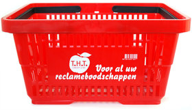 Nog een nieuwjaarsgroet van THT. Dit befaamde knalrode reclameboodschappenmandje is op verscheidene locaties bij wisselende bureaus nog steeds als koelkast-, gereedschaps-, enveloppen-, spullenbullen-, of fietsmandje in gebruik.