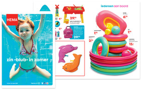 De zomer staat voor de deur, de HEMA folder moet die belofte uitstralen. Een heerlijk zomers zwembadbeeld, een stoer meisje dat onder water zwemt in een HEMA bikini en een hele berg - man overboord - inflatables. Een strakke layout en folderopzet zoals we die van HEMA gewend zijn. HEMA maakt het leven leuker en gemakkelijker.