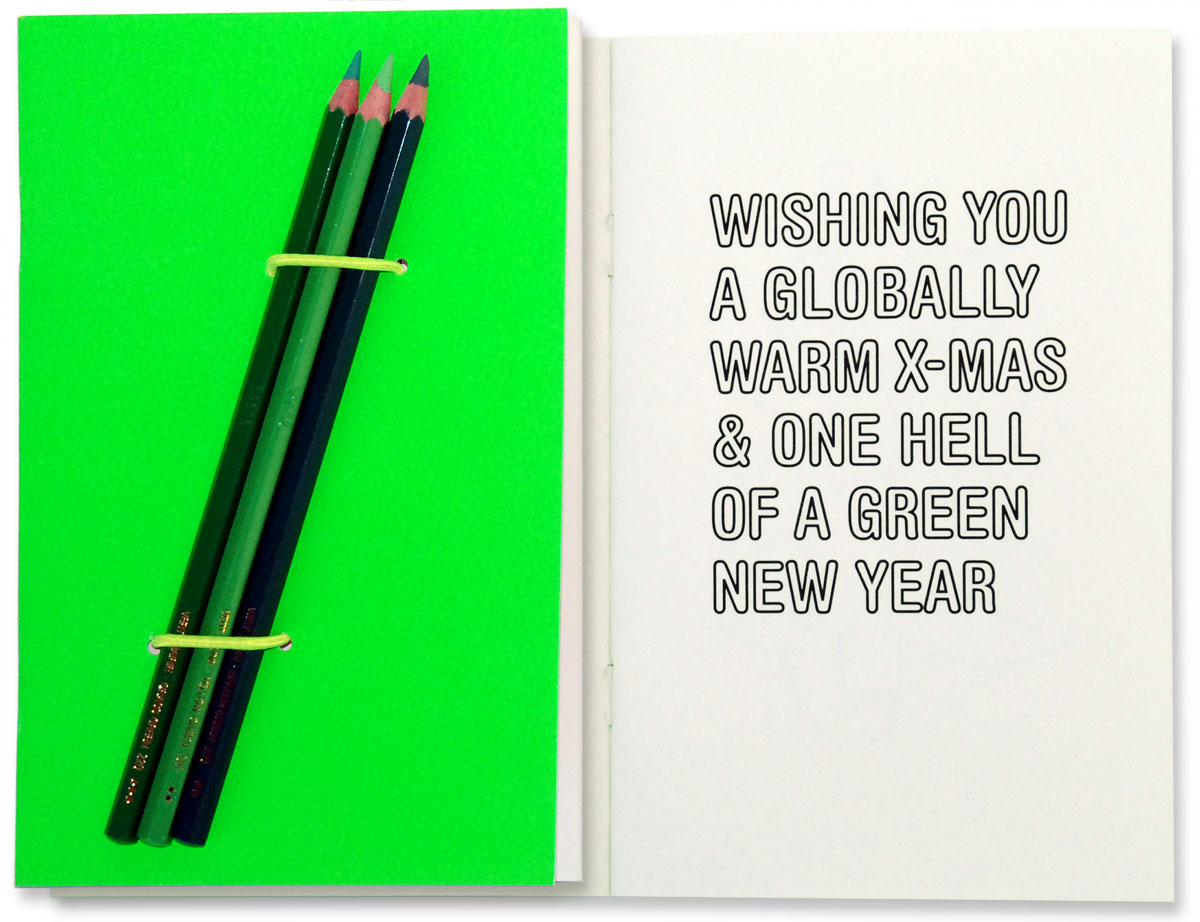 Het milieu is helemaal hot. Qua opwarming. Vandaar deze nieuwjaarsinhaker op alles wat de mens bezighoudt. Met de bijgeleverde kleurpotloden wordt uiteindelijk alles groen. Zelfs de Hummer. En alle stoplichten. Een mooie gedachte voor het nieuwe jaar.