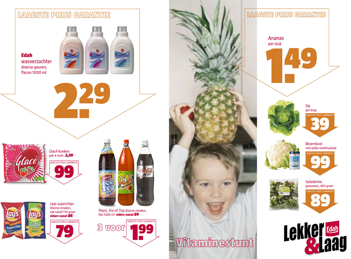 Misschien kent u de ooit succesvolle supermarktketen Edah nog. In de laatste periode werd nog een mooi, nieuw en veelbelovend winkelconcept gelanceerd: Edah Lekker&Laag. Uiteraard hoorde daar ook een frisse Huis-aan-Huis folder bij.